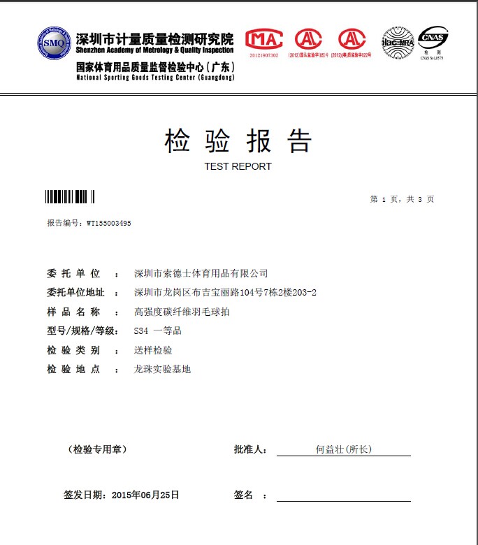 體育器材質檢報告