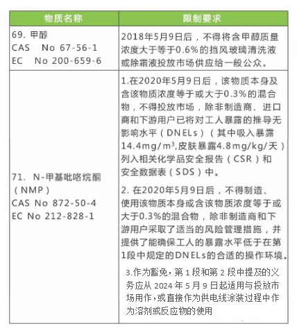 根據(jù)(EU) 2018/589及(EU) 2018/588 ,REACH法規(guī)附件XVII新增以下條款: