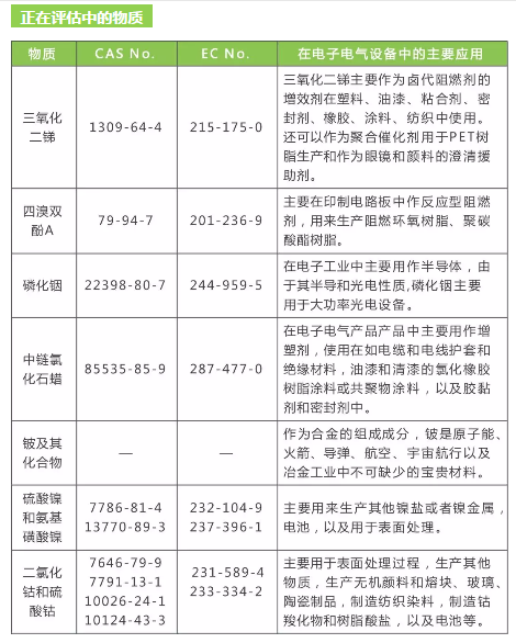 2018年4月20日,歐盟發布消息針對7項有害物質展開利益相關方公共咨詢,咨詢將持續8周時間,將從2018年4月20日開始,到2018年6月15日結束。咨詢期間相關利益方可以提交意見。此次咨詢目的是收集7項物質的相關信息,為后續進一步評估做準備。相關物質有可能被加入RoHS指令附錄II受限物質列表進行管控。